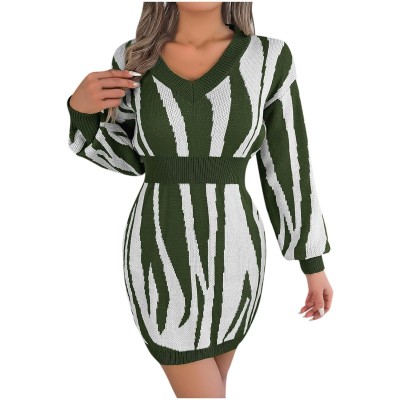 Sweater Dresses for Women Fashion Casual V-Neck Long Sleeve Button Long Sleeve Wrapped Hip Dress
