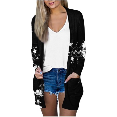 Trendy Cardigan Women'S Fashion Loose Casual Long Sleeve Printed Mid-Length Cardigan Jacket