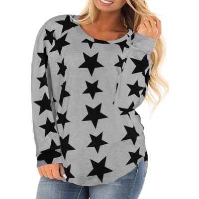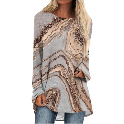 Women's Fashion Casual T-Shirt Gradient Long Sleeve Round Neck Medium Long Top