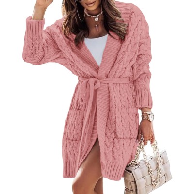 Women's Cardigans 2024 Fall Winter Long Sleeve Open Front Oversized Cable Knit Chunky Sweater Coat with Belt