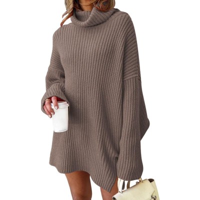 Womens Oversized Turtleneck Sweater Dress Trendy Pullover Ribbed Knit Dress