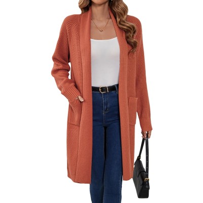 Women Long Cardigan Sweaters with Pocket Open Front Coatigan Jackets Long Sleeve Shawl Collar Knit Coat