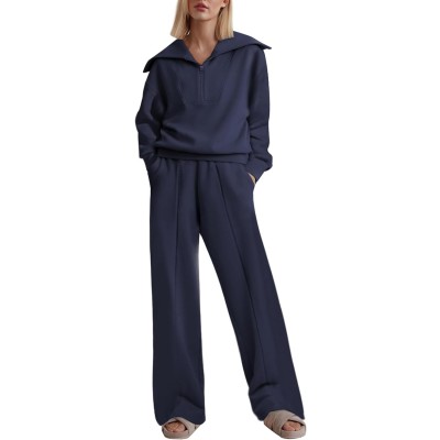 Two Piece Outfits Half Zip Sweatshirt Sweatsuit Lounge Sets for Women Matching Set Wide Leg Sweatpant Tracksuit