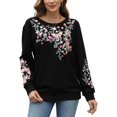 Women's Embroidered Sweatshirt Mexican Boho Long Sleeve Crewneck Pullover Bohemian Clothes Mama Fall Outfits