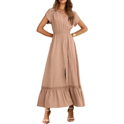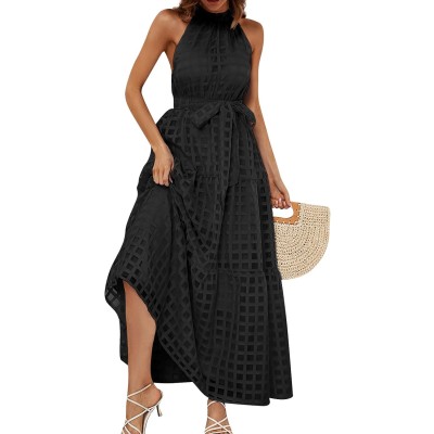 Summer Dresses for Women Fashion Hanging Neck Sleeveless Ruffle Long Dresses