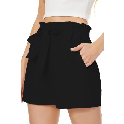 Shorts for Women Summer Casual Bowknot Belted Elastic High Waisted Wide Leg Beach Loose Short Pants