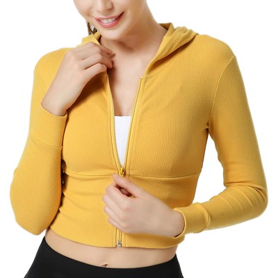 Women's Hooded Jacket Full-Zip Long Sleeve Solid Yoga Crop Top Hoodie Sweatshirt