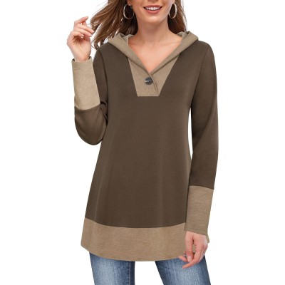 Women's Hooded Tunic Tops V Neck Casual Swing Pullover Hoodie Long Sweatshirts