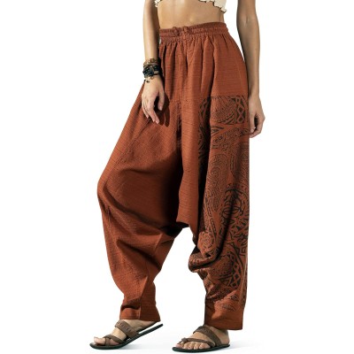 Women's Printed Harem Pants, Casual Baggy Low Crotch Jogger Pants, Oversized Aladdin Style Pant for Women