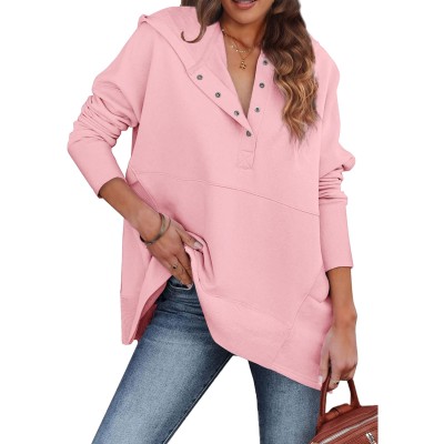 Womens Oversized Hoodies Buttons V Neck Pullover Sweatshirt Casual Loose Sweater Fall Winter Clothes