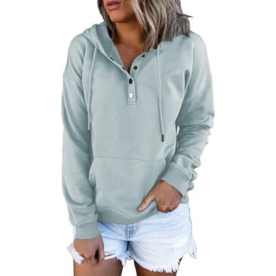 Womens Fall Winter Fashion Sweatshirts Quarter Buttons Hooodies Women Casual Trendy Crewneck Tops